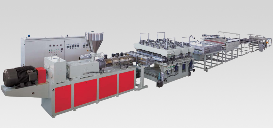 結皮發泡板采用塞路卡(Celuka)技術發泡,與自由發泡相比面層不僅平整而且光滑,具有較大的皮層硬度和剛度,力學性能明顯優于自由泡體。 PVC結皮發泡板材擠出設備由異向平行雙螺桿擠出機、板材模具、真空定型和十輥牽引等輔機部分組成。應用前景十分廣闊。廣泛應用于高檔櫥 柜家具、廣告刻字材料、建筑裝飾材料,汽車、火車、輪船內裝飾材料等。